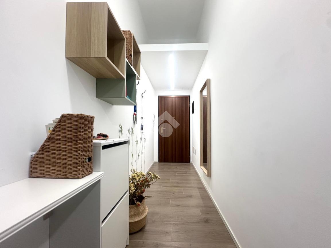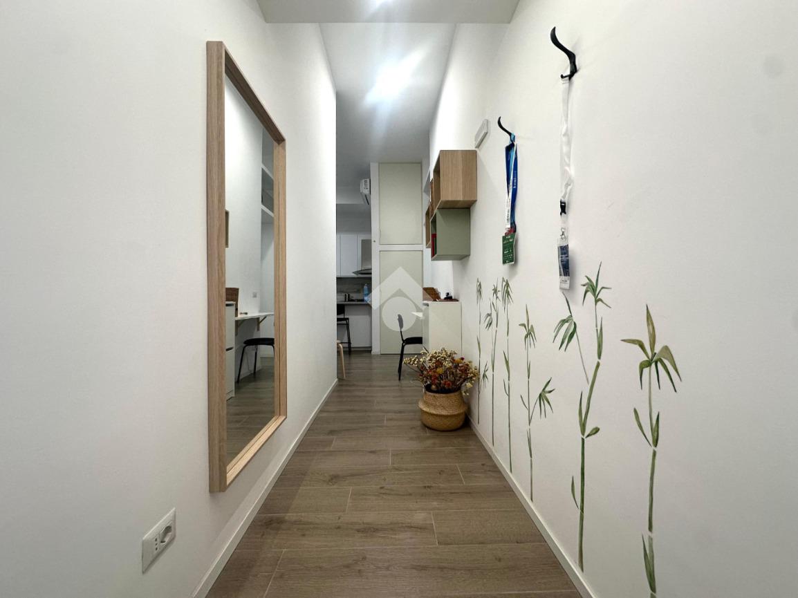 L’appartamento, caratterizzato da una doppia esposizione est–ovest che assicura luminosità durante tutto l’arco della giornata, si compone di ingresso, soggiorno con cucina a vista, balcone, bagno e camera da letto. Un comodo soppalco offre ulteriore spazio come area contenitiva.